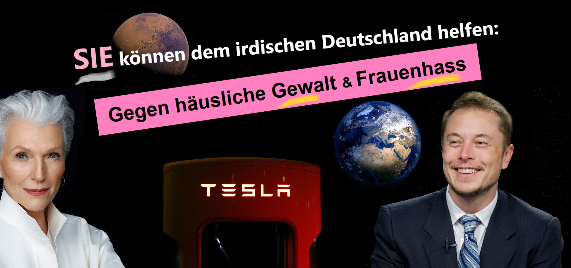 Unsere NGO hat unser soziales Projekt Frauendenkmal offiziell allen deutschen Parteien vorgestellt, der CDU/CSU, der SPD, den Grünen, der FDP, den Linken, dem BSW und natürlich auch der AfD, weil die bekanntlich auch demokratisch gewählt wurde. Wer von den erwähnten Parteien hat unser sehr wichtiges Anti-Gewalt-Projekt Frauendenkmal für ein besseres Deutschland abgelehnt? Beteiligen sich die OMAS GEGEN RECHTS an unserem sehr wichtigen Anti-Gewalt-Projekt? Gibt es deutsche Investoren, die sich am Frauendenkmal beteiligen? Welche Rolle spielen Tesla, Elon Musk und die AfD bei unserem gesellschaftlich sehr wichtigen Anti-Gewalt-Projekt? Die Antwort wird die meisten Menschen verblüffen.